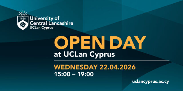 Η Ημέρα Γνωριμίας (Open Day) του Πανεπιστημίου UCLan Cyprus θα πραγματοποιηθεί στην Πανεπιστημιούπολη του UCLan Cyprus στη Λάρνακα, την Τετάρτη 22 Απριλίου, από τις 17:00 έως τις 19:00.