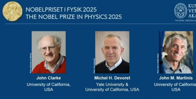 Τρεις επιστήμονες από αμερικανικά πανεπιστήμια κέρδισαν το Νόμπελ Φυσικής 2025 για το έργο τους στον τομέα της κβαντομηχανικής. Οι νικητές είναι οι Τζον Κλαρκ, Μίτσελ Ντεβορέτ και Τζον Μαρτίνις. Κέρδισαν το βραβείο «για την ανακάλυψη της μακροσκοπικής κβαντομηχανικής σήραγγας και της κβαντοποίησης της ενέργειας σε ηλεκτρικό κύκλωμα». Από το 1901 έως το 2024 έχουν απονεμηθεί 118 Βραβεία Νόμπελ Φυσικής. Από τους 227 βραβευμένους φυσικούς μόλις πέντε ήταν γυναίκες συμπεριλαμβανομένης της Μαρί Κιουρί το 1903.